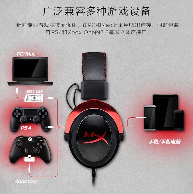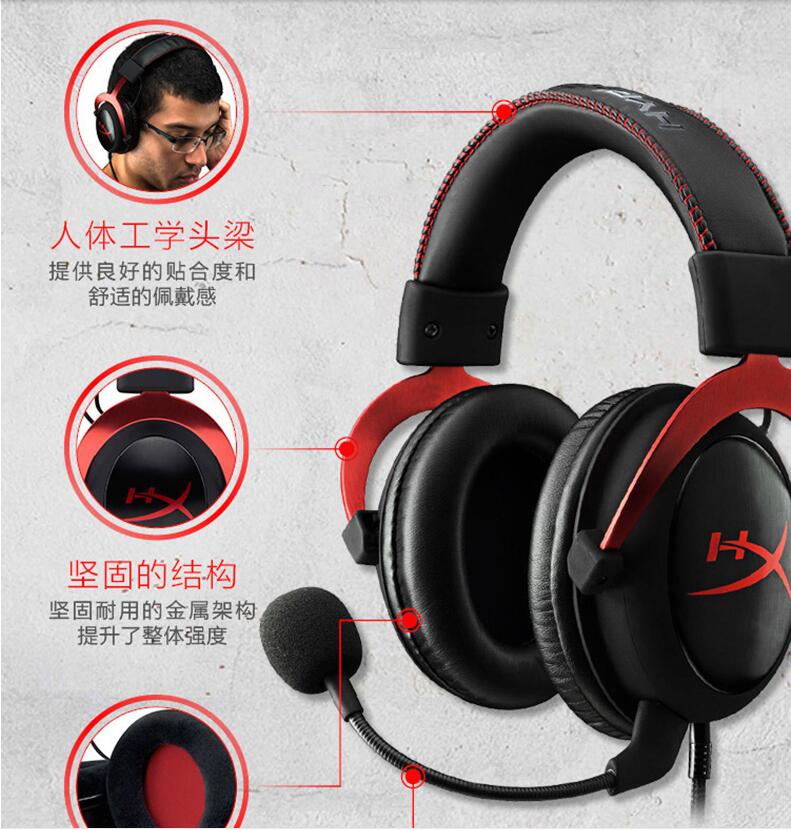 金士頓HyperX Cloud II颶風2 頭戴式電競游戲耳機7.1有線吃雞耳麥